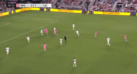 第90分钟,梅西脚后跟助攻,苏亚雷斯小角度破门,迈阿密国际3-1