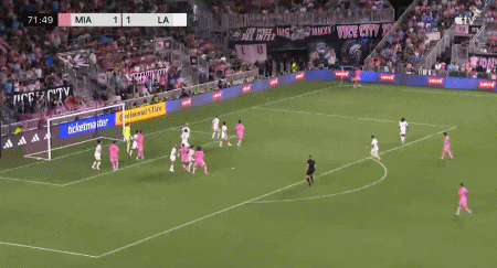第84分钟,梅西扣过防守队员弧顶处起脚破门,迈阿密国际2-1